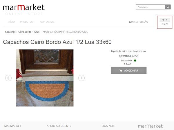 Assim que adiciona um artigo ao carrinho, verá essa indicação no mini-carrinho junto ao menu principal .